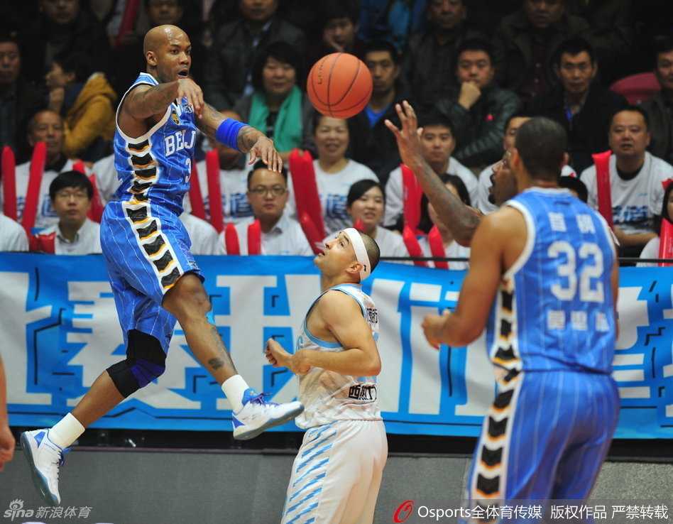 莫里斯高高跃起,在空中滑翔后将球狠狠砸进篮筐,这一记暴扣宣示着北京队内线不可侵犯的尊严。